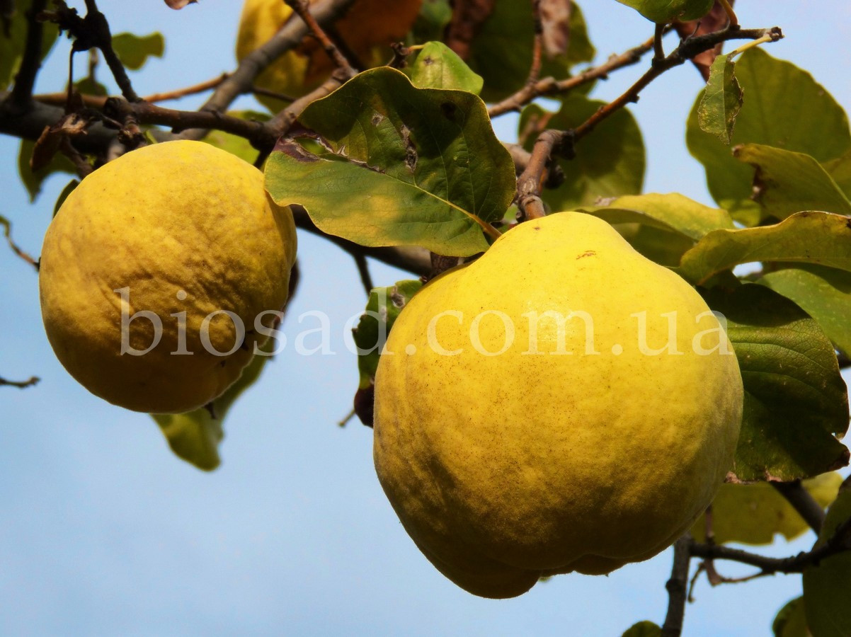 Плоди лимонно-жовтого кольору, грушеподібної форми, з широкими згладженими ребрами, вагою близько 230-350 г.